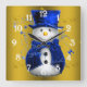 Blue Snowman on Gold Christmas Quadratische Wanduhr