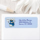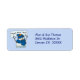 Dieses Adressetikett zeigt ein niedliches Cartoon-Bild eines Schneemanns, der einen blauen Hut und Schal trägt und ein Schild trägt, auf dem steht: "Happy New Year!". Es wird auf einem helleren, passenden blauen Hintergrund platziert. Einfach mit Ihrem eigenen Namen und Ihrer eigenen Adresse anpassen.