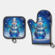 Beautiful Blue Snowman Snowflakes Oven Mitt & Pot Holder Set