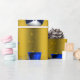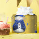 Eine niedliche und farbenfrohe Weihnachtsverpackung mit einem Muster von kleinen Schneemännern in blauen Samthüten und -westen, umgeben von goldenen Sternen, um Ihrem Geschenk in dieser Urlaubssaison eine skurrile und stilvolle Touch zu geben.