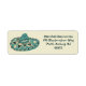 Diese individuellen Rücksendeadressen-Aufkleber zeigen meine Darstellung eines Sombrero in türkisblau und sind bereit, mit Ihrem Namen und Ihrer Adresse in aquamarinen, dunklen Buchstaben personalisiert zu sein. Text und Grafik sind Set vor einem cremefarbenen Hintergrund.