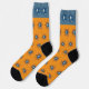 Dieses Design zeichnet sich durch eine blaue Spinne und ein Netz aus, in einem sich wiederholenden Muster, mit einem orangen Hintergrund. Die Band oben auf der Socke ist ein koordinierendes Blau mit zusätzlichen Spinnen.