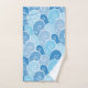 Ein modernes Set mit Handtuch, das mit blauen und weißen Spiralwellen ausgestattet ist