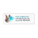 Die links Seite dieser Rücksendeadressen-Aufkleber ist mit einem hellblauen Aquarellspritzer mit einem Portrait eines australischen Rinderhundes versehen. Ihr eigener Text ist in Blau und Schwarz rechts neben dem Bild.