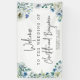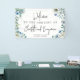 Fröhliche weiße Blume und grüne Aquarellfarben-Blätter bilden einen schönen Rahmen auf diesem hübsch blauen Frühlingsbanner für Hochzeitsfeiern. Eine schicke, moderne, handgeschriebene Schüssel mit den Namen des Paares, um die Menschen zu ihrem Hochzeitsempfang oder Zeremonie willkommen zu heißen.