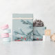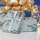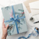 Ein elegantes und raffiniertes Urlaubspapier mit blauen Fichtenzweig-Garnelen auf der Diagonale mit weißen Konen und roten Ilex-Beeren auf einem hellfichtenblauen Hintergrund.