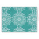 Dieses weiße Mandala sitzt auf einem aquamarinen, hellen Hintergrund. Die Farbe ist beruhigend und harmonisch. Teil der Losonieth Mandala Kollektion.