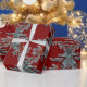 Blue Spruce Red Berries Lattice Dunkelrot Geschenkpapier