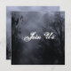 Ein individuelles quadratisches Halloween-Party-Einladungsvorlage mit schwarz grungelösten Schriftzeichen auf einem spöttisch Spuk Himmel mit unangenehmen Bäumen entlang einer Spuk, dunklen Straße, gotischen Raben und einem bewölkten Vollmond mit lila Nebel. Klicken Sie auf Anpassen, um Ihre Schriftart, Größen und mehr zu ändern, sogar Ihr Design für später retten.