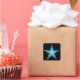 Modernes Design mit einem "leuchtenden" blau-weißen Stern auf schwarzem Hintergrund. Aufkleber mit individualisierbarem Design für Sie, um mit Ihrem eigenen Text, Bildern und Ideen zu personalisieren. Bitte beachten Sie, dass es sich um ein gedrucktes Bild handelt, das mit Originalfotos und Digitaltechnik erstellt wurde, es nicht glänzt oder echte Glitzern enthält.