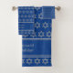 Das stilvolle israelisch-blaue STAR OF DAVID Bath Handtuch Set zeigt Imitate silbernen Star von David in einem rundum gekachelten Muster. Der Text lautet GLÜCKLICH HOLIDAY CHAG SAMEACH, und ist KUNSTBAR, sodass Sie durch einen Namen, Gruß oder hebräischen Text ersetzen können. Dies wäre ein ideales Geschenk für Hanukkah, Rosh Hashanah, Weihnachten, Geburtstage und das ganze Jahr über. Kommt in anderen Farben.