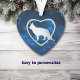 Dieses hübsche Holiday-Ornament ist perfekt für den GSD-Besitzer und bietet eine silberne Silhouette deutscher Schäferhund, umgeben von einem blauen Sternenhimmel. Das Bild wird in eine Imitat-Juwel Rahmen Herz-Form mit einem entsprechenden Stern hellblauen Rahmen platziert. Die Rückseite des Ornaments hat den gleichen blauen Hintergrund, und Text für Sie anpassen.