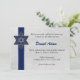 Stilvolle Bar Mitzvah-Einladung mit dunkelblauen Seitenstreifen, die mit Star of David auf hellgrauem, bedrücktem Hintergrund verziert sind. Einfach mit den Details für Ihren Anlass anpassen. Einladungen werden mit Umschlägen und Ihrer Wahl von Papier ergänzt. Koordination der RSVP-Karte verfügbar (siehe unten)