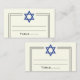 Blue Star von David Bar Mitzvah elegante Platzkarte, mit dem Stern von David in blau und doppelte schwarze Grenze auf Elfenbeinhintergrund. Stilvoll und klassisch zugleich ist diese formale, neutrale Einladung perfekt für einen modernen oder traditionellen Bar Mitzvah. Es kann auch für eine Bat Mitzvah verwendet werden.