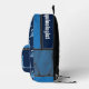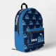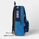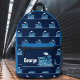 Blue puffing steam train boys backpack. Personalize with your child's name, perfect for library or school. Currently reads George and George on boiler plate plus George - Super Ferroequinologist along the top flap, add your own name maybe your family name class and own message. Part of the kids graphic steam train range. Background color can also be changed to your own color choice currently in dark blue. A perfect gift for boys to take to school or as a gift to a train or railway transport fan. Original steam train graphic art and design by Sarah Trett exclusively for www.mylittleeden.com on zazzle.