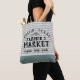 Moderne Bauernmarkttasche personalisiert mit Ihrer Stadt, Familienname oder anderen Sondertexten. Bitte beachten Sie, dass die subtile Leinenstruktur Teil des bedruckten Designs ist und das Produkt nicht aus echtem Leinenstoff besteht. Klicken Sie auf die Schaltfläche "Anpassen", um Ihren eigenen Text hinzuzufügen und Ihr eigenes einzigartiges Design zu erstellen!