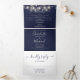 Das Ganze in einer marineblauen, dreifach gefalteten Hochzeitseinladung mit hübschen Saitenlichtern und eleganter Typografie. Die Einladung beinhaltet Ihre Festgastinformationen und eine abnehmbare RSVP-Karte. Entwickelt von Thisisnotme©