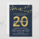 Elegante 20-jährige Wiedersehen-Einladung mit Lichterfolgen und "20" in Imitaten Goldfolie mit "Year Wiedersehen" in Weiß vor dunkelblauem Hintergrund auf der Vorderseite und einem dunkelblauen und Imitat goldenen Polka Dot Muster auf der Rückseite. Karo andere passende Elemente hier https://www.zazzle.com/collections/school_reunion-119258151199573326?rf=238364477188679314 Personalisieren Sie sie, indem Sie den Platzhalter-Text ersetzen, um Ihre Informationen hinzuzufügen. Für weitere Optionen, wie zum Beispiel den Schriftart zu ändern und ihn zu vergrößern oder zu verändern, klicken Sie auf den Button "Anpassen". *Bitte beachten Sie, dass das Zazzle-Wasserzeichen, das in der Zoomvorschau angezeigt wird, NICHT auf dem gedruckten Endprodukt erscheint. © Rosewood and Citrus