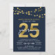 Elegante 25-Jahres-Wiedersehen-Einladung mit Lichterketten und "25" in Imitaten Goldfolie mit "Year Wiedersehen" in Weiß vor dunkelblauem Hintergrund auf der Vorderseite und einem dunkelblauen und Imitat goldenen Polka Dot Muster auf der Rückseite. Karo andere passende Elemente hier https://www.zazzle.com/collections/school_reunion-119258151199573326?rf=238364477188679314 Personalisieren Sie sie, indem Sie den Platzhalter-Text ersetzen, um Ihre Informationen hinzuzufügen. Für weitere Optionen, wie zum Beispiel den Schriftart zu ändern und ihn zu vergrößern oder zu verändern, klicken Sie auf den Button "Anpassen". *Bitte beachten Sie, dass das Zazzle-Wasserzeichen, das in der Zoomvorschau angezeigt wird, NICHT auf dem gedruckten Endprodukt erscheint. © Rosewood and Citrus