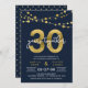 Elegante 30. Jubiläumsveranstaltung mit Lichterketten und "30" im Imitat Gold mit "Jahren zusammen" in Weiß vor dunkelblauem Hintergrund. Die Karte enthält ein passendes Muster auf der Rückseite. Karo passende Artikel wie Aufkleber und Briefmarke hier https://www.zazzle.com/collections/strings_of_lights_faux_gold_celebration_collection-119311942951401241?rf=238364477188679314 Personalisieren Sie sie, indem Sie den Platzhalter-Text ersetzen, um Ihre Informationen hinzuzufügen. Für weitere Optionen klicken Sie auf die Schaltfläche "Anpassen". *Bitte beachten Sie, dass das Zazzle-Wasserzeichen, das in der Zoomvorschau angezeigt wird, NICHT auf dem gedruckten Endprodukt erscheint. © Rosewood and Citrus