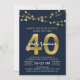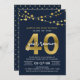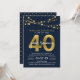 Elegante 40-jährige Wiedersehen-Einladung mit Lichterketten und "40" in Imitaten Goldfolie mit "Year Wiedersehen" in Weiß vor dunkelblauem Hintergrund auf der Vorderseite und einem dunkelblauen und Imitat goldenen Polka Dot Muster auf der Rückseite. Karo andere passende Elemente hier https://www.zazzle.com/collections/school_reunion-119258151199573326?rf=238364477188679314 Personalisieren Sie sie, indem Sie den Platzhalter-Text ersetzen, um Ihre Informationen hinzuzufügen. Für weitere Optionen, wie zum Beispiel den Schriftart zu ändern und ihn zu vergrößern oder zu verändern, klicken Sie auf den Button "Anpassen". *Bitte beachten Sie, dass das Zazzle-Wasserzeichen, das in der Zoomvorschau angezeigt wird, NICHT auf dem gedruckten Endprodukt erscheint. © Rosewood and Citrus