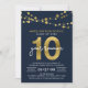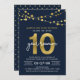 Elegante 10-jährige Wiedersehen-Einladung mit Lichterfolgen und "10" in Imitaten Goldfolie mit "Year Wiedersehen" in Weiß vor dunkelblauem Hintergrund auf der Vorderseite und einem dunkelblauen und Imitat goldenen Polka Dot Muster auf der Rückseite. Karo andere passende Elemente hier https://www.zazzle.com/collections/school_reunion-119258151199573326?rf=238364477188679314 Personalisieren Sie sie, indem Sie den Platzhalter-Text ersetzen, um Ihre Informationen hinzuzufügen. Für weitere Optionen, wie zum Beispiel den Schriftart zu ändern und ihn zu vergrößern oder zu verändern, klicken Sie auf den Button "Anpassen". *Bitte beachten Sie, dass das Zazzle-Wasserzeichen, das in der Zoomvorschau angezeigt wird, NICHT auf dem gedruckten Endprodukt erscheint. © Rosewood and Citrus