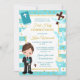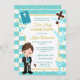 Blue Stripe Brünett Boy First Heilige Kommunion Einladung