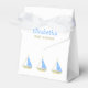 Diese lustigen Baby-Duschvorzugboxen sind mit nautischen Segelbooten mit blau-weiß gestreiften Segeln ausgestattet. Personalisieren Sie Ihre Auswahl an speziellen Texten auf der Vorder- und Rückseite.
