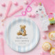 Elegant Blue Stripes Bear Baby Shower Paper Plates
