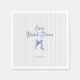 Quirkische und whimsikale Brautparty-Servietten mit einem wunderschönen handgezeichnet Bogen in einem lustigen und spielerischen Stil mit einem weichen blau vertikal gestreiften Hintergrund. Der lässige, handgeschriebene Schriftart zeichnet die Spannung und die Freude an diesem Anlass perfekt aus.