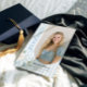 Blue Stripes Floral Aesthetic Photo Graduation Invitation