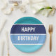 Ein blaues, horizontal gestreiftes Muster und der Text: Happy Birthday.