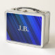 Blue Stripes Initial und Name Metal Lunch Box. Fügen Sie Ihre Initialen/Namen (oder den Text, den Sie bevorzugen) sowohl vorne als auch hinten hinzu. Eine schöne Metallbox mit Schatten aus blauen Streifen. Klug und subtil. Bearbeiten von Text vor: Initialen oder was auch immer zurück: Name oder was auch immer