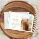 Taufkarte mit blauen Streifen und einem einfachen blauen Kreuz auf Elfenbeinhintergrund. Platzhalter Foto von Freepik.