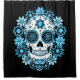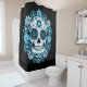 Dia de los Muertos Zuckerschädel in bunten Blautönen, umgeben von Blume.