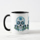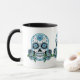 Dia de los Muertos Zucker Schädel in Blautönen mit schönen Blume und Herzen.