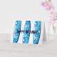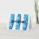 Happy Birthday Card mit einem Design von drei blauen Surfbrettern mit blauen tropischen Blume vor einem blassblauen und weißen Hintergrund mit Blumenmotiv. Ideal für den Sommer, um Gedanken über Hawaii und den Strand inspirieren. Für Surfer und Strandliebhaber überall.