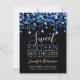 Blue & Black Sweet 16 Birthday Funkelnd String Lights "Save the Date" Ankündigungsvorlage.