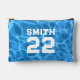 Sie können die Größe des Schriftartes für andere Namen oder Nummern anpassen, um Ihre eigene bedruckte Schminktasche zu erstellen. Die Rasterlinien im System können Ihnen helfen, Text zu ordnen. Das Foto des Swimmingpools hat weitere Namen mit diesem Sportdesign. Im Hintergrund befindet sich ein Aqua-Blau-Swimmingpool.