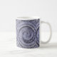 Eine abstrakte Grafik mit kreisförmigen, geometrischen Mustern, die in einem Whirlpool mit variierenden, blauen und lila Farbtönen wirbeln.
