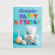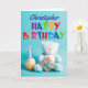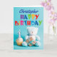 Eine spezielle 1. Geburtstagskarte! Diese erste Geburtstagskarte enthält einen niedlichen Teddybär, einen Kuchen und einen bunten Text. Ein unvergessliches Design für jemanden, der ein Jahr alt sein wird. Fügen Sie den Namen des ersten Geburtstags auf der Vorderseite der Karte hinzu, um ihn für den speziellen Jungen oder Mädchen anzupassen. Ändern Sie dann die Nachricht innerhalb, um sie zu personalisieren.
