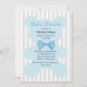 Stilvolle Babydusche in grauem und weißem gestreiftem Muster, vorne mit einer blauen Silhouette eines Teddybären mit einer blauen Krawatte als Textbereich. Die Rückseite der Einladung ist in einem soliden Blau ausgeführt. Personalisieren Sie den gesamten benutzerdefinierten Text, um Ihre Ereignisanforderungen Anzug.