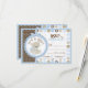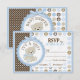 Niedlicher, weißer Teddybär mit blauem Bogen und 3D-Look Medaillontag und Stripbogen-Trimm über Polka-Dot mit Pfotenprint RSVP-Karte für eine Babydusche.