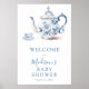 Blue Tee Party Baby Dusche Begrüßungszeichen Poster