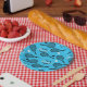 Blaue und weiße Papiertafel für Tennis-Party. Muster auch als Stoff und viele tägliche und Tennisthemen Party.