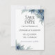 Angestrichener Fleck in Blautönen, Hochzeit Speichern Sie die Datumskarte. Entworfen, um unsere Blue Thistle Collection zu ergänzen. Die hintere Farbe in staubblauer Farbe kann bearbeitet werden.
