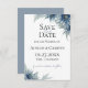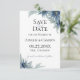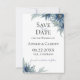 Angestrichener Fleck in Blautönen, Hochzeit Speichern Sie die Datumskarte. Entworfen, um unsere Blue Thistle Collection zu ergänzen. Die hintere Farbe in staubblauer Farbe kann bearbeitet werden.