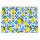 This gift bag features a watercolor French country tile and lemon pattern in blue and yellow.