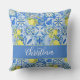 Blue Tile French Country Lemon Pattern Monogram Kissen