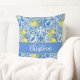 Bring a touch of Mediterranean charm to your living space with this elegant throw pillow featuring a vibrant French country blue tile pattern accented by lush yellow lemons. The design includes a stylish center band that can be personalized with a name, your initials or a saying, making it a refreshing and custom addition to any home decor.